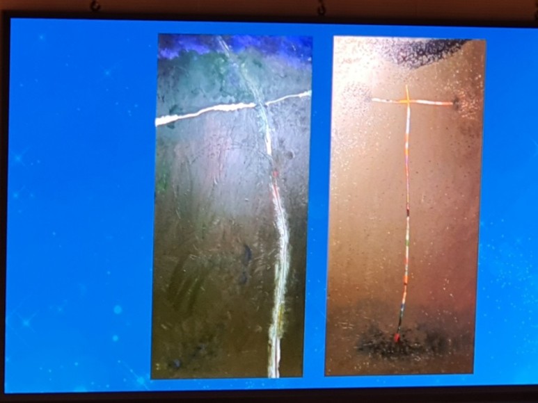 (마음치료 일을 하다 보니 알게 된 것이 있는데, 피해자가 용서해주고 사과를 받고 싶어도 가해자는 대부분 침묵하는 것이었다.) 가해자이면서도 침묵하며 살던 제가 2020년 7월, CBS ‘새롭게 하소서’'에 출연해 드디어 피해자로 살게 되었다. 하나님께 진심으로 감사드렸다. 내 아들의 엄마 자리라도 지키게 하신 것이 감사해서 작년부터 '십자가를 그리기 시작했다. 작년에 그린 십자가는, 내가 생각지도 못한 현실 속에서 박사 학위를 받았음에도 불구하고 생활비라도 벌어야 하는 상황까지 몰려 D직종이라고 하는 카페 일을 하면서도, 하나님께 감사해야겠다는 생각이 들어서 그린 것이다.
