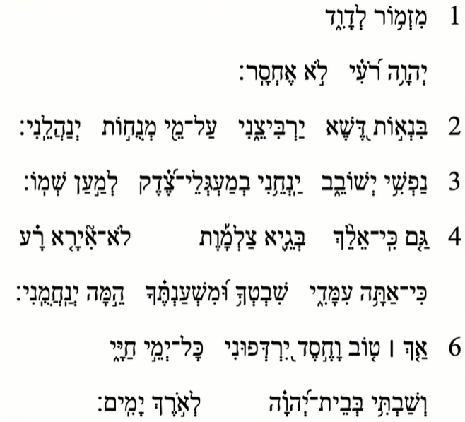 1 여호와는 나의 목자시니 내게 부족함이 없으리로다