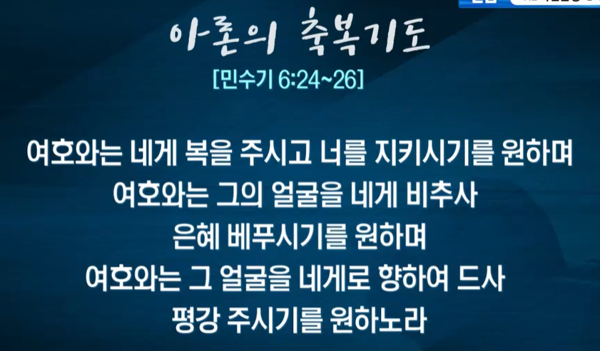 (민 6:24~26 여호와는 네게 복을 주시고 너를 지키시기를 원하며 여호와는 그의 얼굴을 네게 비추사 은혜 베푸시기를 원하며 여호와는 그 얼굴을 네게로 향하여 드사 평강 주시기를 원하노라) 아멘!